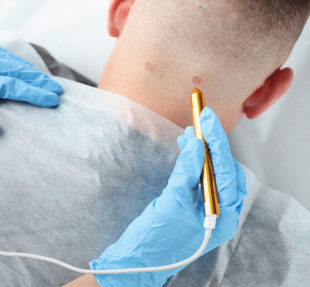 - Crioterapia, care implică aplicarea de azot lichid la nivelul creșterii pentru a o îngheața și a o îndepărta.