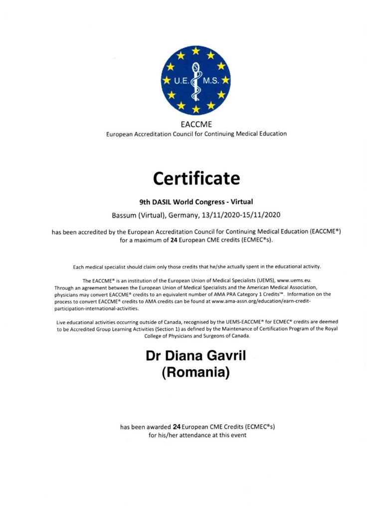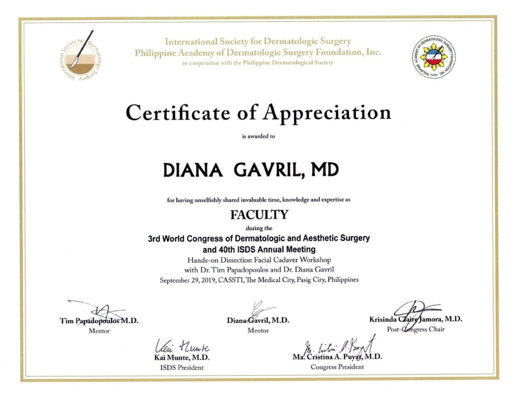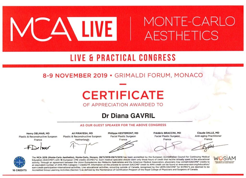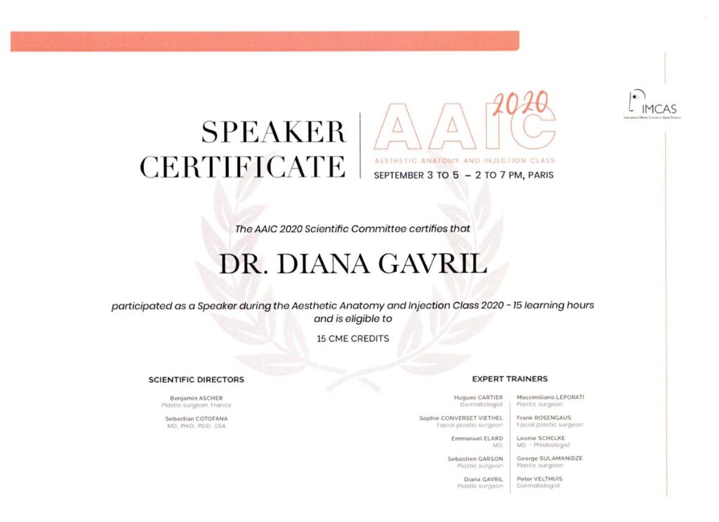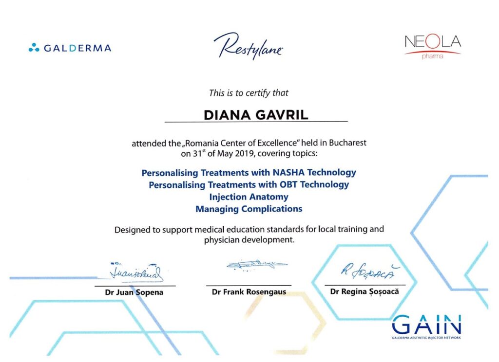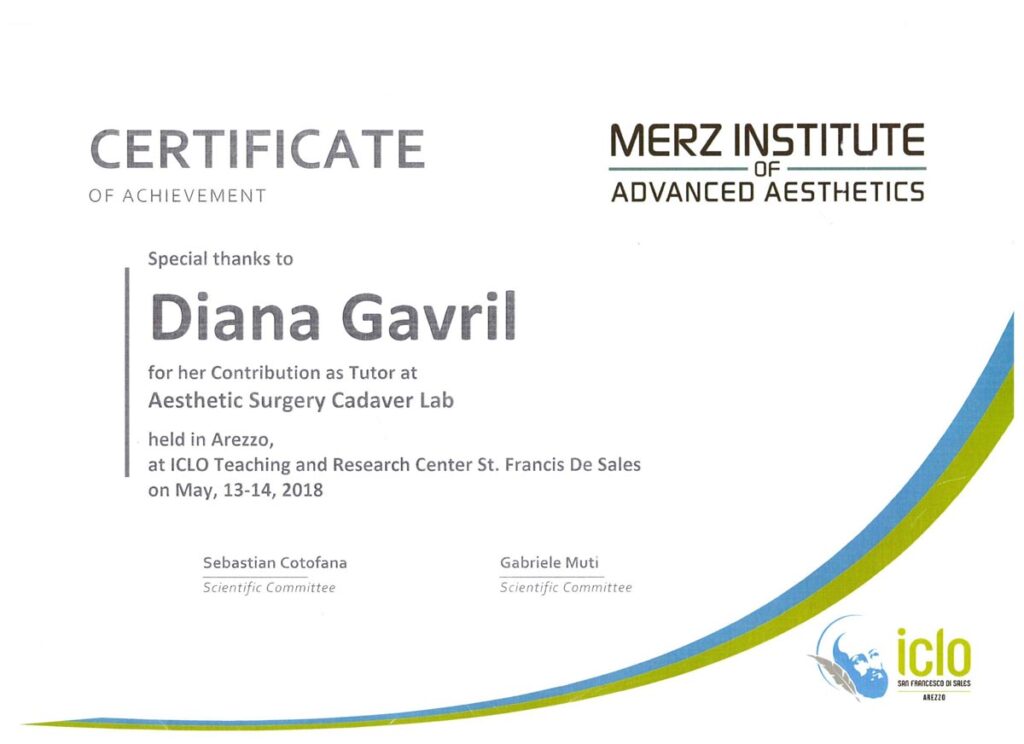 La baza expertizei Doctorului Diana Gavril, director medical al clinicii noastre, stau studii și acreditări valoroase obținute atât în țară cât și în alte țări in care domeniul esteticii si chirurgiei plastice este în stadiu avansat de dezvoltare.Experiență